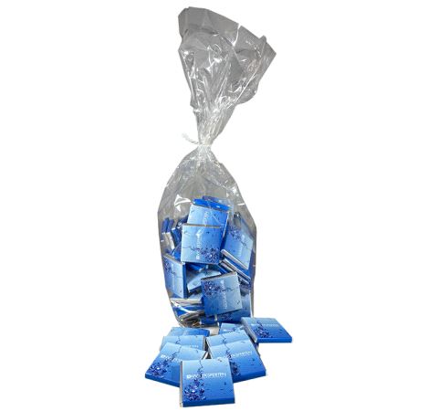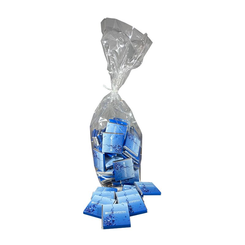 Pakket i cellofanpose med 1 kg. Sjokolade